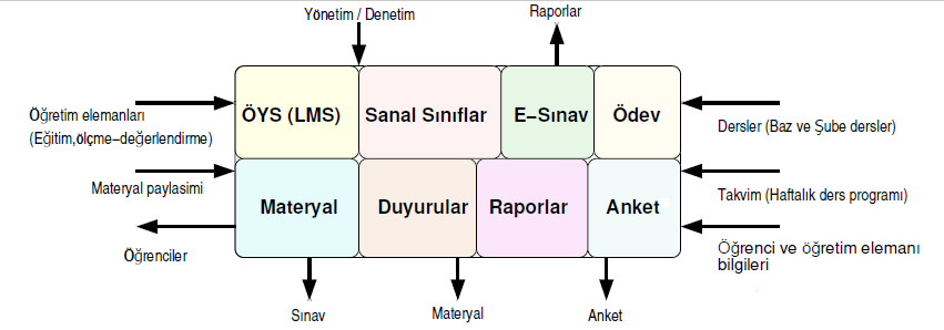 1. Öğrenme Yönetim Sistemi (ÖYS) Modülü: Haftalık sanal ders programlarının oluşturulmasını, uzaktan yürütülen eğitim faaliyetlerinin organize edilmesini ve yürütülmesini sağlayan modül.