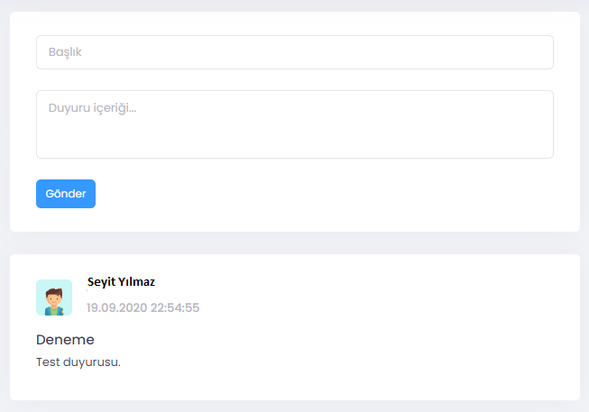 - Sağ üst taraftaki panelde duyurunun Başlığı ve Gövde metni girilir.